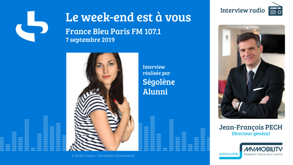 MyMobillity était dans l’émission “Le week-end est à vous” (sur radio France Bleu Paris) animée par Ségolène Alunni ce samedi 7 septembre 2019. L’occasion de présenter nos services de transports aux citoyens franciliens et d’appeler aux candidatures pour nos postes de conducteurs-accompagnateurs en IDF.