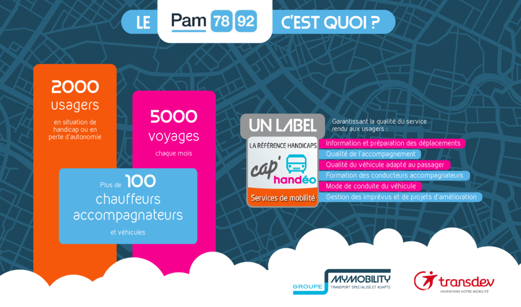 Depuis 2017, le groupe MyMobility assure le transport collectif à la demande des personnes en situation de handicap pour le compte du Département des Yvelines (78) et du Département des Hauts-de-Seine (92), PAM 78-92. En partenariat avec Transdev, nous avons été choisis pour la qualité de nos services. Avec le label Cap’Handéo, nous confirmons notre engagement inconditionnel pour la mobilité.