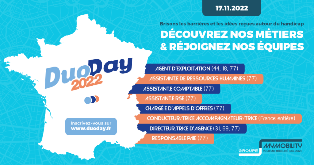 Dans le cadre de la Semaine européenne pour l’emploi des personnes handicapées, le groupe MyMobility s’est mobilisé une fois encore pour la 5ème édition des #DuoDay qui s’est tenue le 17 novembre dernier.