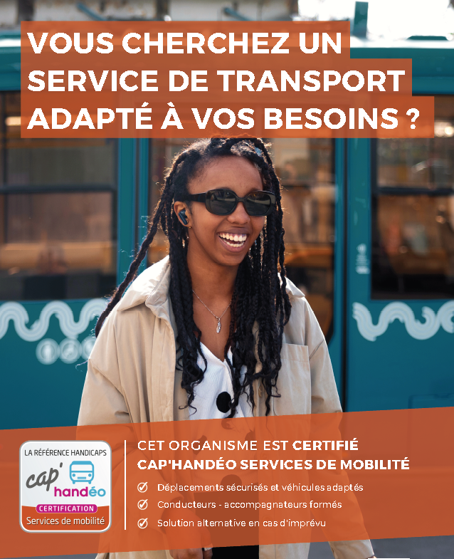 Le réseau “Cap’Handéo Services de mobilité” propose des services de transport à la demande – individuel ou collectif -, des services de transport collectif et des services d’accompagnement individuel. Il facilite la mobilité en permettant aux personnes en situation de handicap de repérer facilement les professionnels du transport adaptés et compétents.